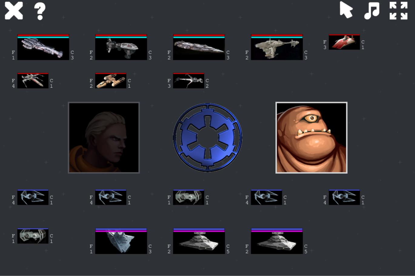 This game is a turn-based tactical space battle simulator set in the Star Wars universe.