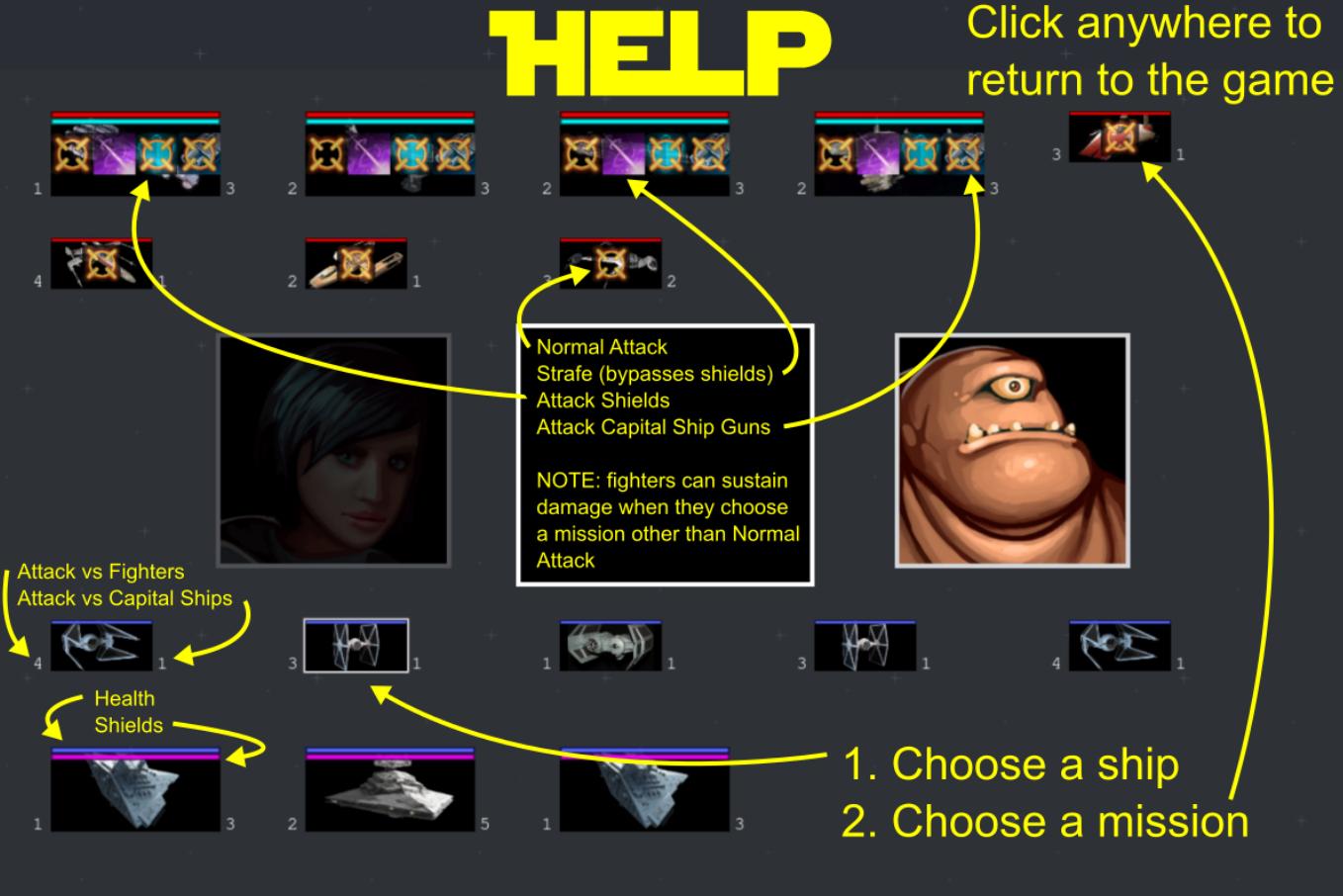 The Star Wars art was taken from various fan sites. The character avatars, sounds effects, and music loops were from various bundles accumulated from Humble Bundle over the years. The icons for the interface were from Kenney’s user interface pack.